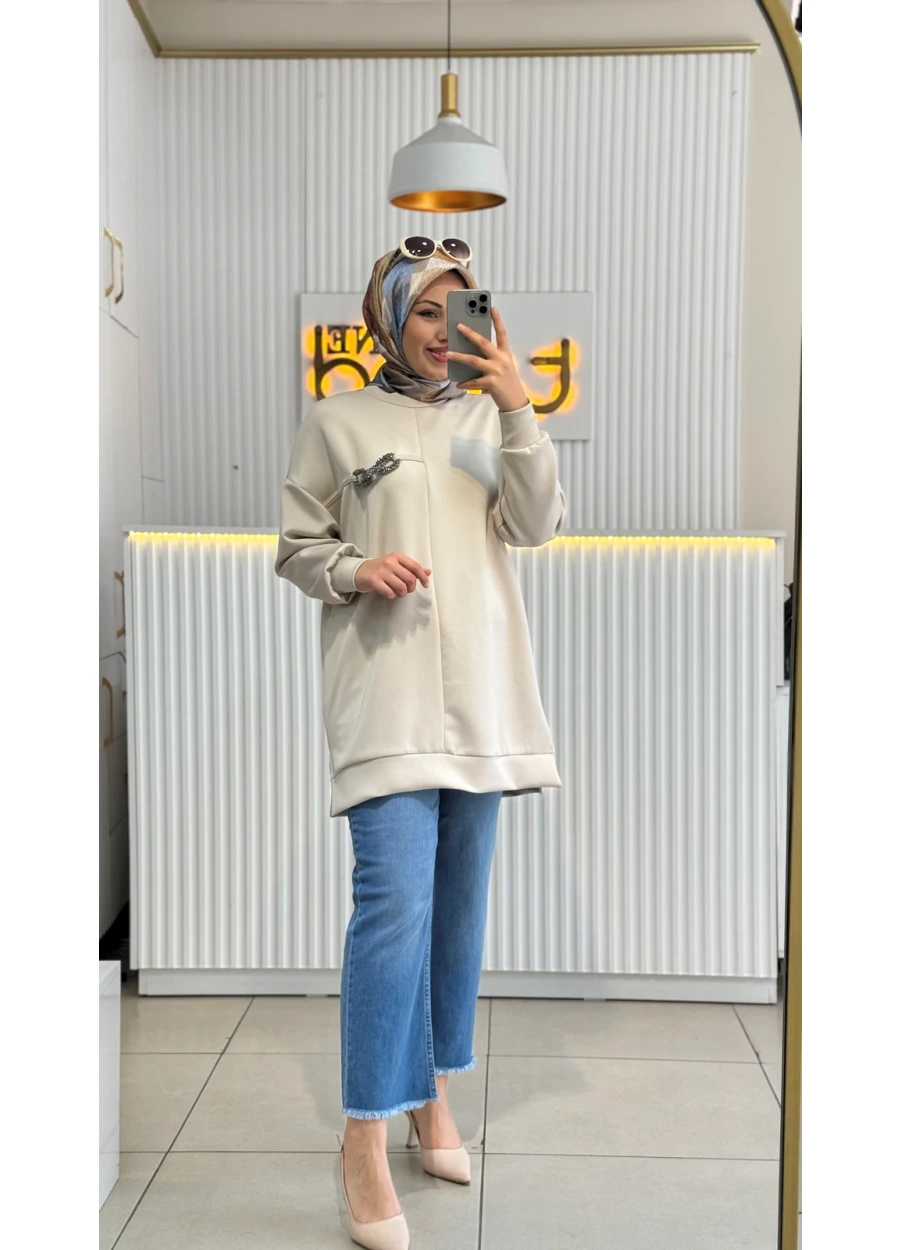 Aksesuarlı tunik, 2025 tesettür trendlerini yansıtan modern ve şık bir tasarımdır. Günlük kullanımda rahatlık sunarken, özel gün kombinlerinde stilinizi tamamlayan vazgeçilmez bir parçadır.