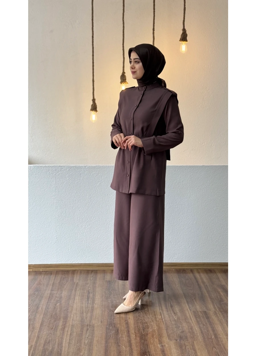Armine Trend Kemer Detay Pantolonlu Takım, modern tasarımı ve zarif kemer detayıyla tesettür giyimde trend şıklığı yakalamak isteyen kadınlar için özel olarak tasarlanmıştır. Günlük kullanımda, ofis stilinde ya da özel davetlerde rahatlıkla tercih edilebilen bu pantolonlu takım, hem konfor hem de estetik görünüm sunar.