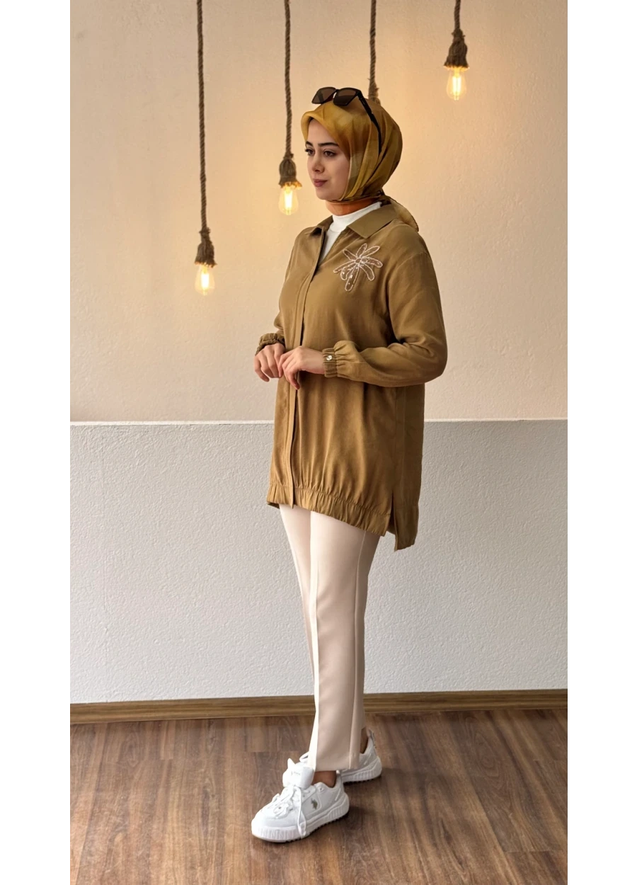 Armine Trend Yaka Palmiye Taş İşlemeli Tunik Hardal - Tesettür Giyim 2025 | Elbise ve Eşarp Modelleri - SeyanModa