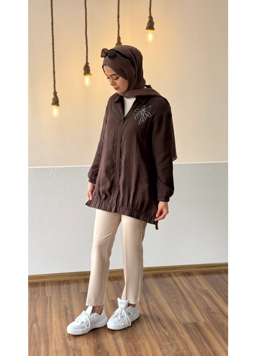 Armine Trend Yaka Palmiye Taş İşlemeli Tunik, özel taş işlemeleri ve modern yaka tasarımıyla 2025’in trend tesettür modasında ön plana çıkan bir parçadır.