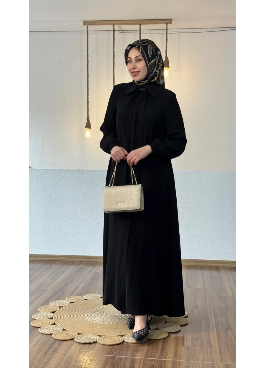 Kravat Detaylı Ferace Siyah - Tesettür Giyim 2025 | Elbise ve Eşarp Modelleri - SeyanModa