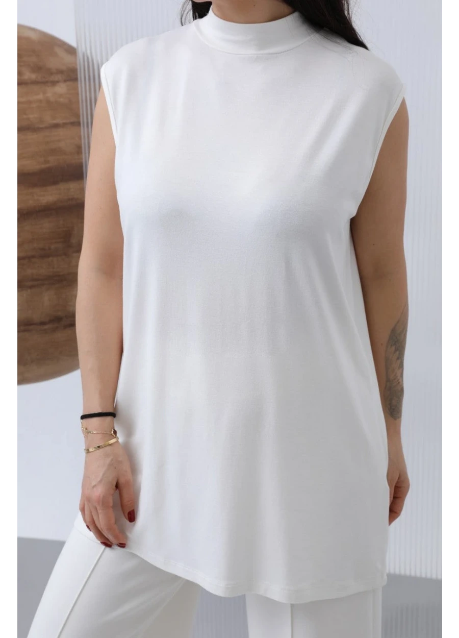 Sıfır Kol Balıkçı Yaka İçlik Ekru - Tesettür Giyim Modası 2025 | Elbise, Şal ve Eşarp Modelleri - SeyanModa