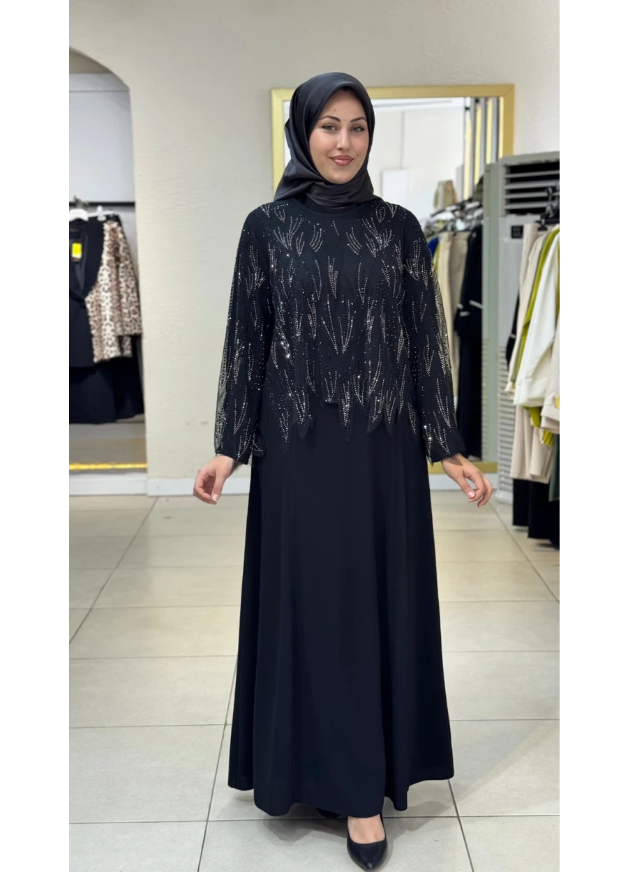 Tül giydirmeli taşlı takım, özel günlerde şıklığınızı öne çıkaran modern bir tesettür tasarımıdır. Zarif tül detayı ve ışıltılı taş işlemeleri sayesinde 2025 tesettür modasında öne çıkan parçalar arasında yer almaktadır.