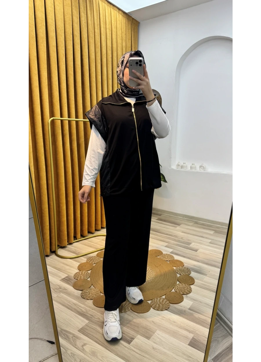 Tesettür Kombinlerinde Yelekli Pantolonlu Takım